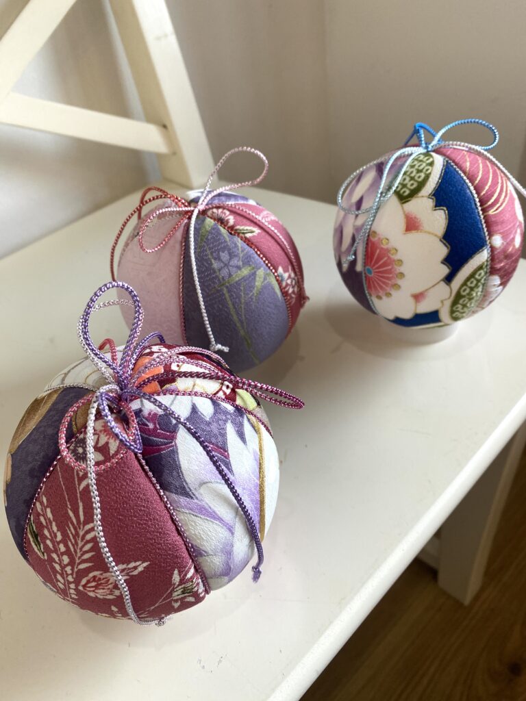 Temari” are used as interior ornaments and for various celebrations throughout Japan.In the class, you will use beautiful kimono fabric pieces to make one.