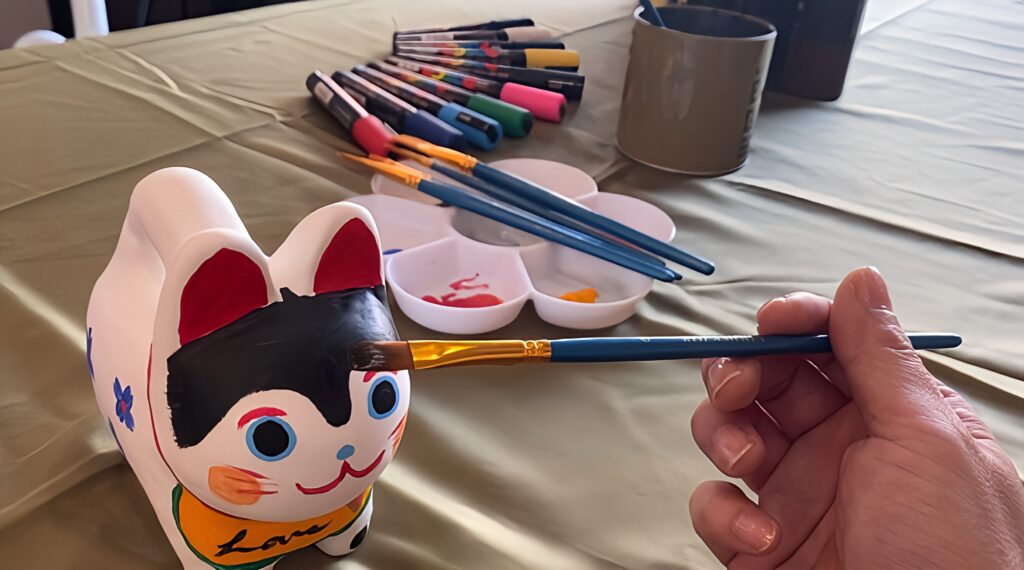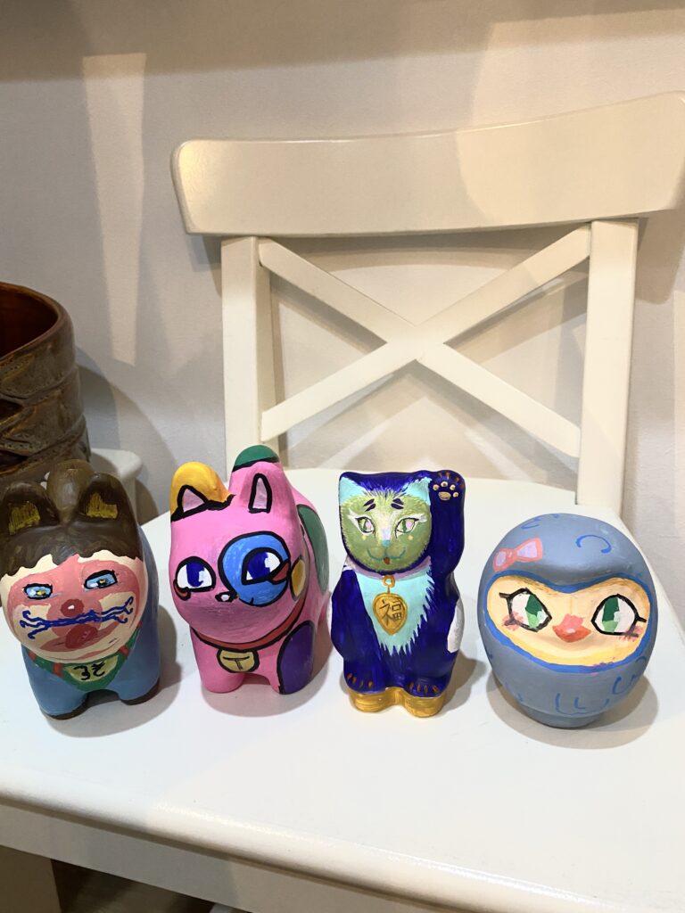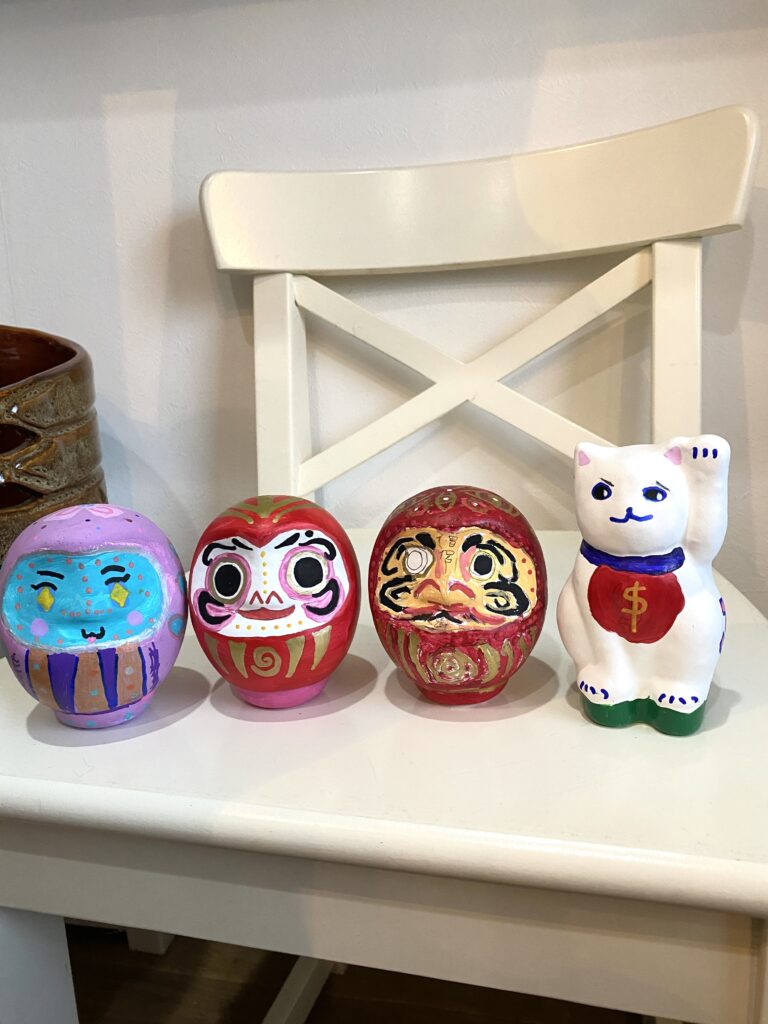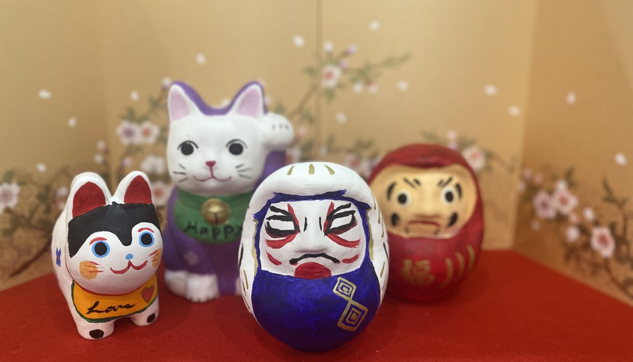 Paint your own papier mâché beckoning cat, Daruma, dog, figurine in your own personal style, guided by a skilled local instructor.